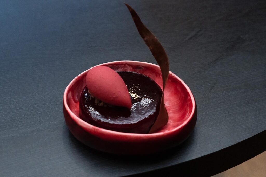 Adriano crafted a flavour profile consisting of beetroot, raspberry, and… popcorn, drawing inspiration from the concept of movies for his dish.