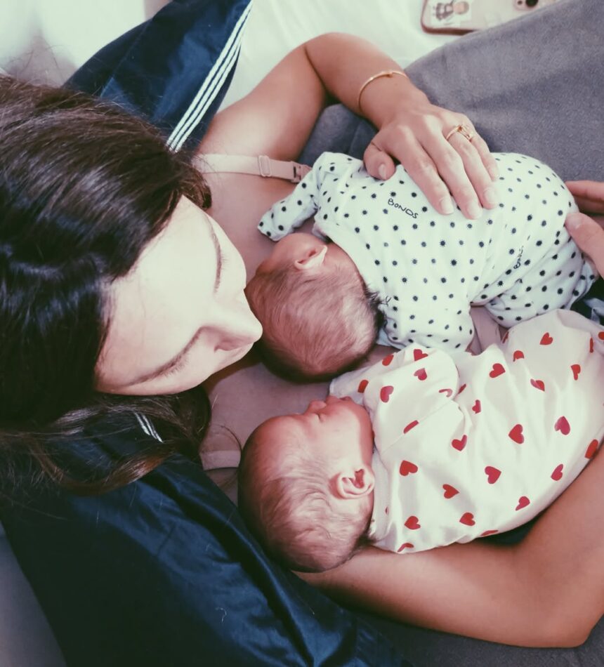 Sarah and Declan’s first photo with their twins, Claudia and Charlotte. Image: Instagram